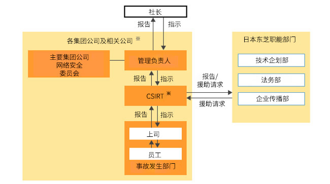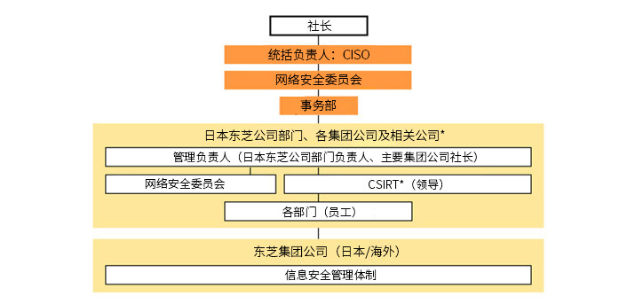 為將信息安全列為經(jīng)營(yíng)管理的一項(xiàng)課題,東芝集團(tuán)建立了由CISO※擔(dān)任“統(tǒng)籌負(fù)責(zé)人”的信息安全管理體制。(※Chief Information Security Officer:首席信息安全官)