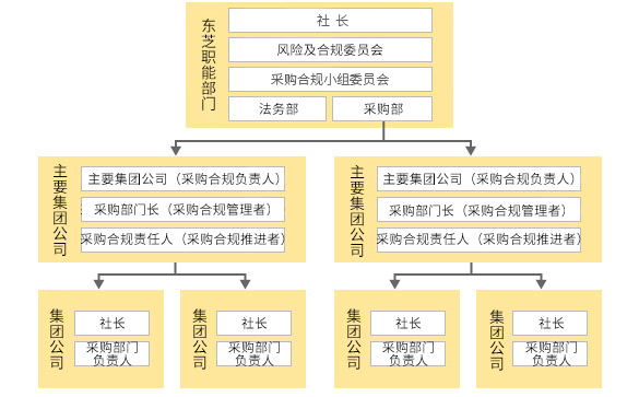 東芝集團(tuán)已完善采購(gòu)合規(guī)推進(jìn)體制,目的是在進(jìn)行每筆采購(gòu)時(shí),能夠確保遵守日本國(guó)內(nèi)外相關(guān)法令。同時(shí),通過(guò)采購(gòu)合規(guī)推進(jìn)體制,向各東芝集團(tuán)公司貫徹傳達(dá)在采購(gòu)中合規(guī)的相關(guān)信息。